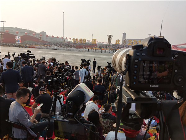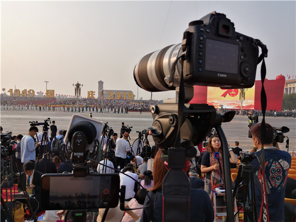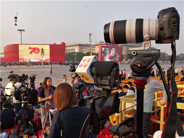 香港商报记者在阅兵现场