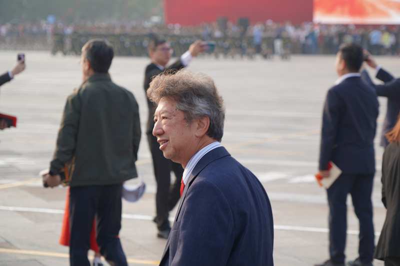 香港行政会议成员、资深大律师汤家骅在现场等待观看阅兵仪式。