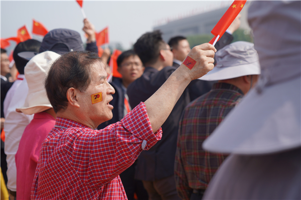 香港观礼团成员祝福祖国,为祖国强大,好开心!