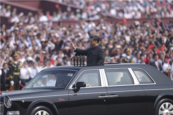 中國的昨天已經寫在人類的史冊上,中國的今天正在億萬人民手中創造,中國的明天必將更加美好。全党全軍全國各族人民要更加緊密地團結起來,不忘初心,牢記使命,繼續把我們的人民共和國巩固好、发展好,繼續為實現“兩個一百年”奮斗目標、實現中華民族偉大复興的中國夢而努力奮斗!