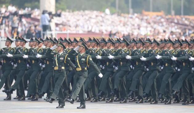 气势磅礴的徒步方队走来了。15个方队来自战略战役联合作战指挥机构、诸军兵种部队、院校科研单位等,这种组合方式体现了解放军、武警部队、民兵“三结合”的武装力量体制。