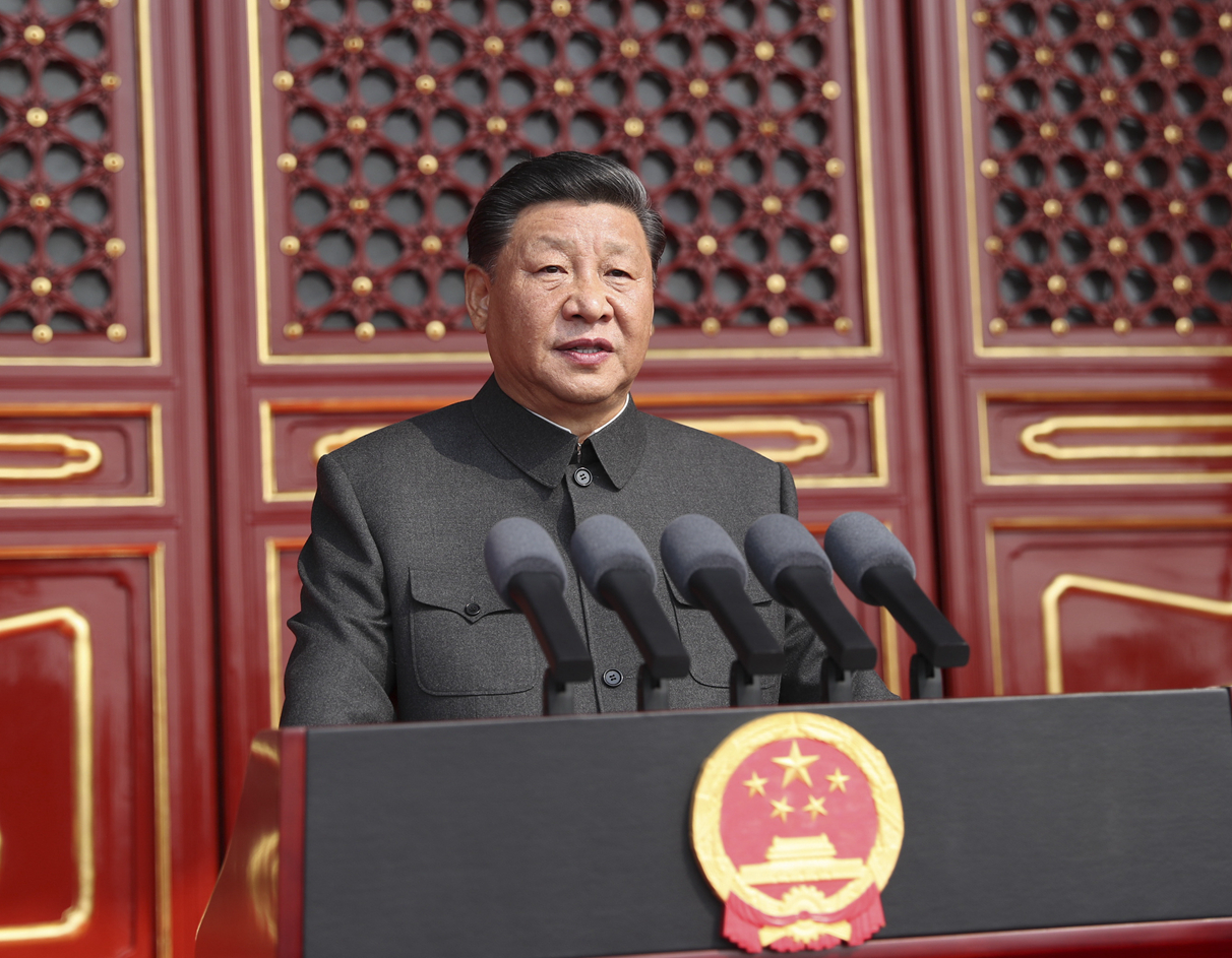習近平指出,70年前的今天,毛澤東同志在這裏向世界莊嚴宣告了中華人民共和國的成立,中國人民從此站起來了。這一偉大事件,徹底改變了近代以後100多年中國積貧積弱、受人欺凌的悲慘命運,中華民族走上了實現偉大復興的壯闊道路。70年來,全國各族人民同心同德、艱苦奮鬥,取得了令世界刮目相看的偉大成就。今天,社會主義中國巍然屹立在世界東方,沒有任何力量能夠撼動我們偉大祖國的地位,沒有任何力量能夠阻擋中國人民和中華民族的前進步伐。