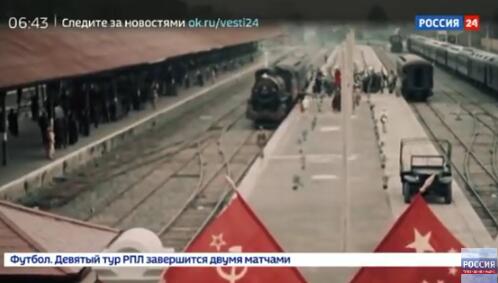 在29日播出的视频中,一个画面定格在了1949年10月10日的北京前门火车站,苏联首任驻华大使尼古拉·瓦西里耶维奇·罗申乘专列抵达北京。早已等候在车站广场的群众挥舞着彩旗和鲜花,热烈鼓掌和欢呼。