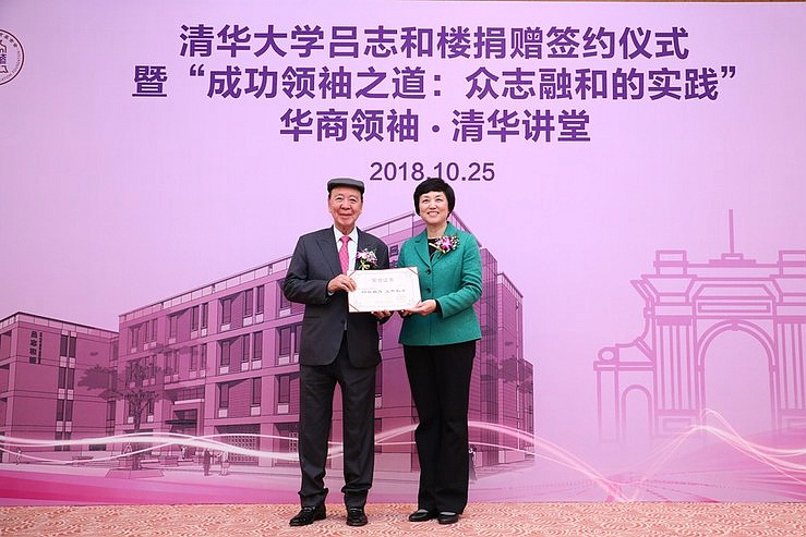 呂志和(左)去年向清華大學捐款2 億元人民幣。