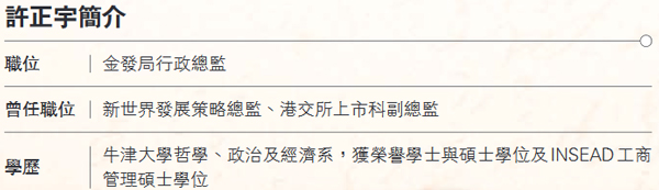 展望未來,許正宇認為,雖然新股集資功能對香港極其重要,但為配合內地經濟發展,港交所應豐富產品種類,更應實現「跨領域」發展,非純粹以股票市場為主。
