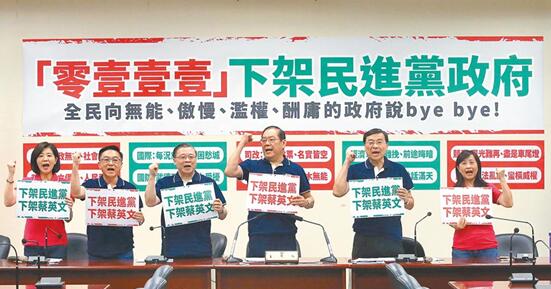 曾永权(右三)8日主持“下架民进党,下架蔡英文”记者会。(图片来源:台湾《中国时报》)
