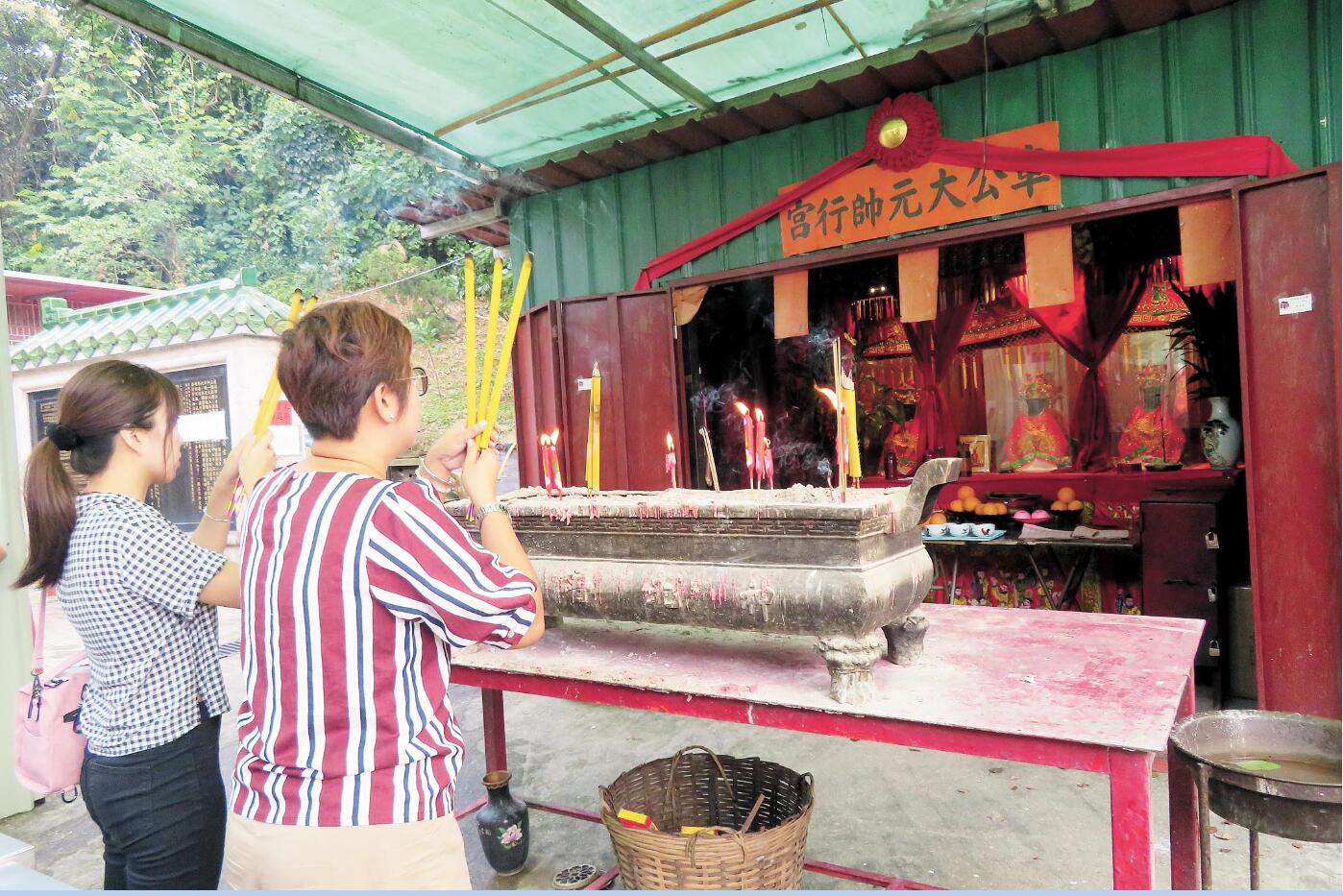 重修中的蠔涌車公廟,不 時有善信參拜。