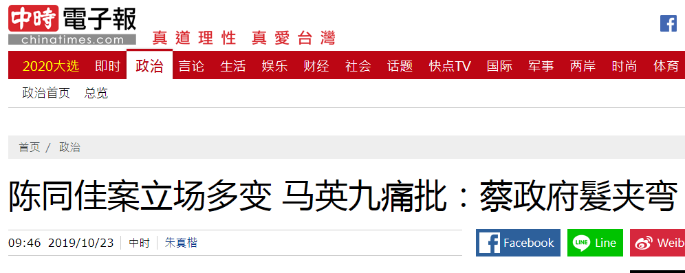 【環球網報道 記者 尹豔輝】在台灣殺害女友、觸發香港特區政府修訂《逃犯條例》的香港嫌犯陳同佳有意赴台“自首”曾被台當局拒絕,台陸委會22日又要求特區政府協助台方人員去香港帶陳同佳回台灣,台灣“中時電子報”稱台當局立場多變。而當台灣地區前領導人馬英九23日被問到會不會認為蔡英文“發夾彎”(意為政策主張轉彎)的問題時,他笑稱,“當然是”。