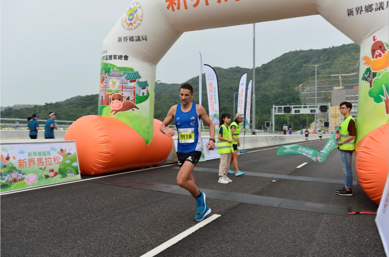 【香港商報网訊】記者周駿報道:10月27日由新界鄉議局主辦的「新界馬拉松」於連接蓮塘/香園圍口岸的香園圍公路進行,其中參加21公里(半馬拉松)選手跑步通過全港陸路最長的隧道「龍山隧道」。賽事籌委會除設有半馬(21公里)、10公里、3公里外,還設有1公里家庭組及1英里嘉賓個人組等多個組別,而4歲至60歲或以上人士均可報名參加比賽,充分體現全民運動精神。鄉議局主席劉業強在大會致辭指出,該局除了關注新界原居民合法傳統權益和非原居民合理訴求之外,亦積極推廣新界文體康樂事業發展。馬拉松運動源自古希臘時代,全球數以萬計人士參與這項群體運動,是次首辦「新界馬拉松」,樂見3000名選手參與,共享和平、友好時光。奪冠的半馬選手以1小時18分58秒跑完全程後讚當日風和日麗、賽道多平緩易出成績。