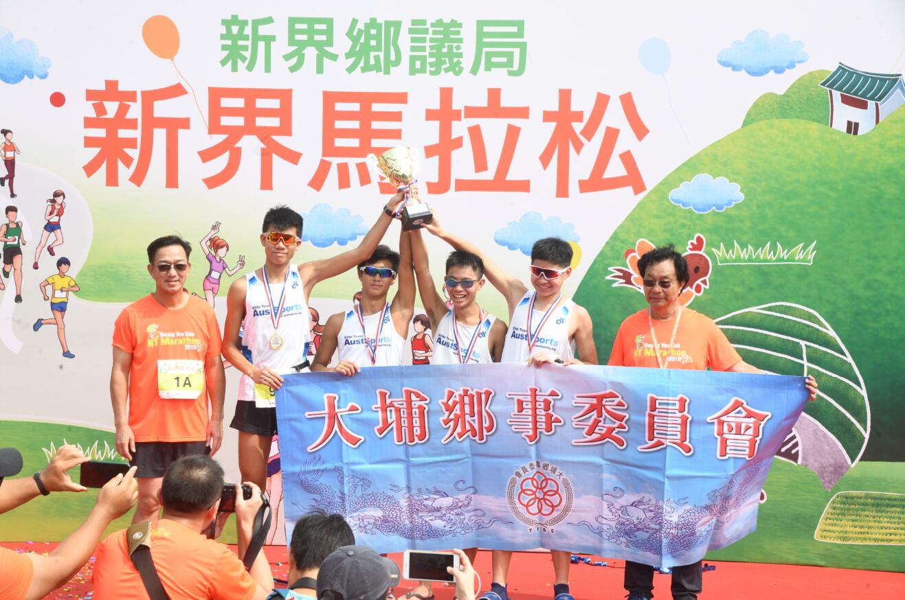 而在4乘1公里隊際接力組比賽中,代表A組的鄉議局主席劉業強跑第一棒,號令笛響起即一馬當先,衝出起點,爭分奪秒誓為隊友創造取勝先機。另外,大會設「新界鄉議局盃」,冠、亞、季軍分別由大埔鄉委會(Team2)、沙頭角區鄉委會及屯門鄉委會奪得。2019年「新界馬拉松」得到新界區體育總會協辦及北區議會、北區及大埔民政事務處、北區上水、粉嶺、沙頭角及打鼓嶺的四鄉鄉委會全力支持,獲得圓滿成功。