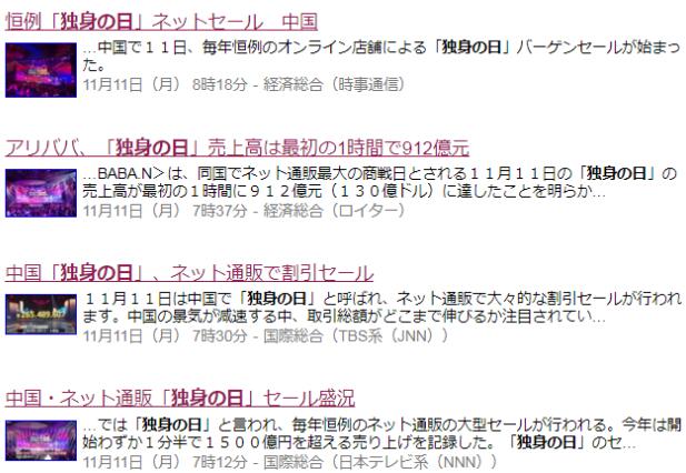 11月11日,日本共同社、朝日新闻、读卖新闻、日本经济新闻等数十家日本主流媒体纷纷开始报道中国双十一盛况。日媒称,双十一本来是中国的“光棍节”,是一个用来约会或寻找结婚对象的日子,但如今已经没人记得这件事了。由于中国电商巨头阿里巴巴的促销活动,这个日子已摇身变成“人类史上最大的购物节”。