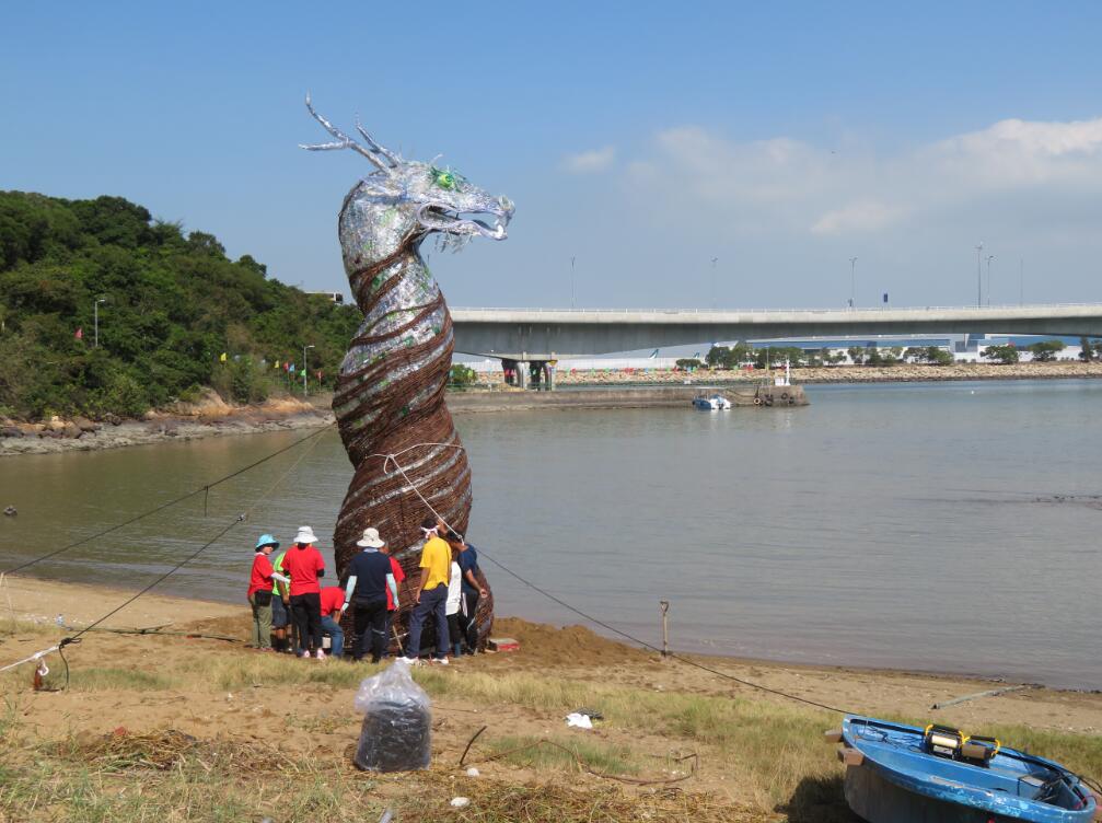 豎 立 在 海 灣 的 「 龍 王」 ,面向機場及港珠澳 大橋。 記者 鄭玉君攝
