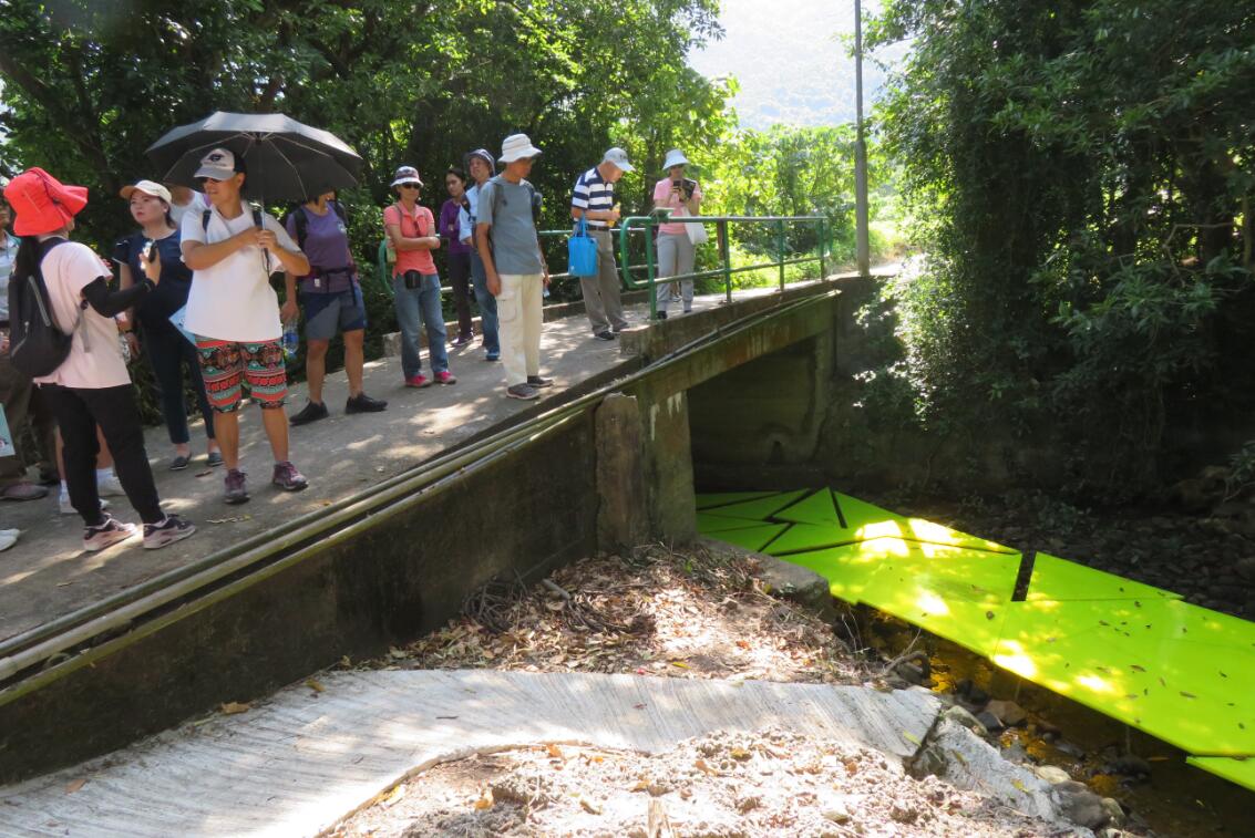 溪澗所見是塑膠板,希望市民反思是 否自己造成。