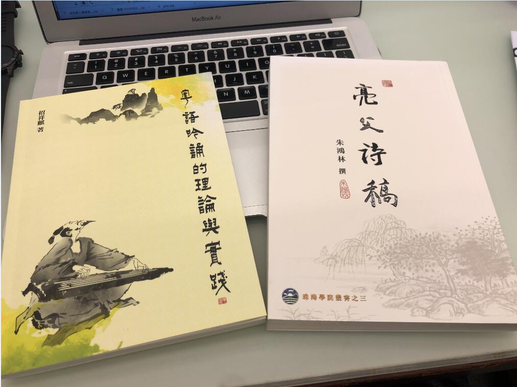 莫教授贈予筆者 兩本書,內詳述其文 友有關粵語吟誦、詩 詞的創作心得。