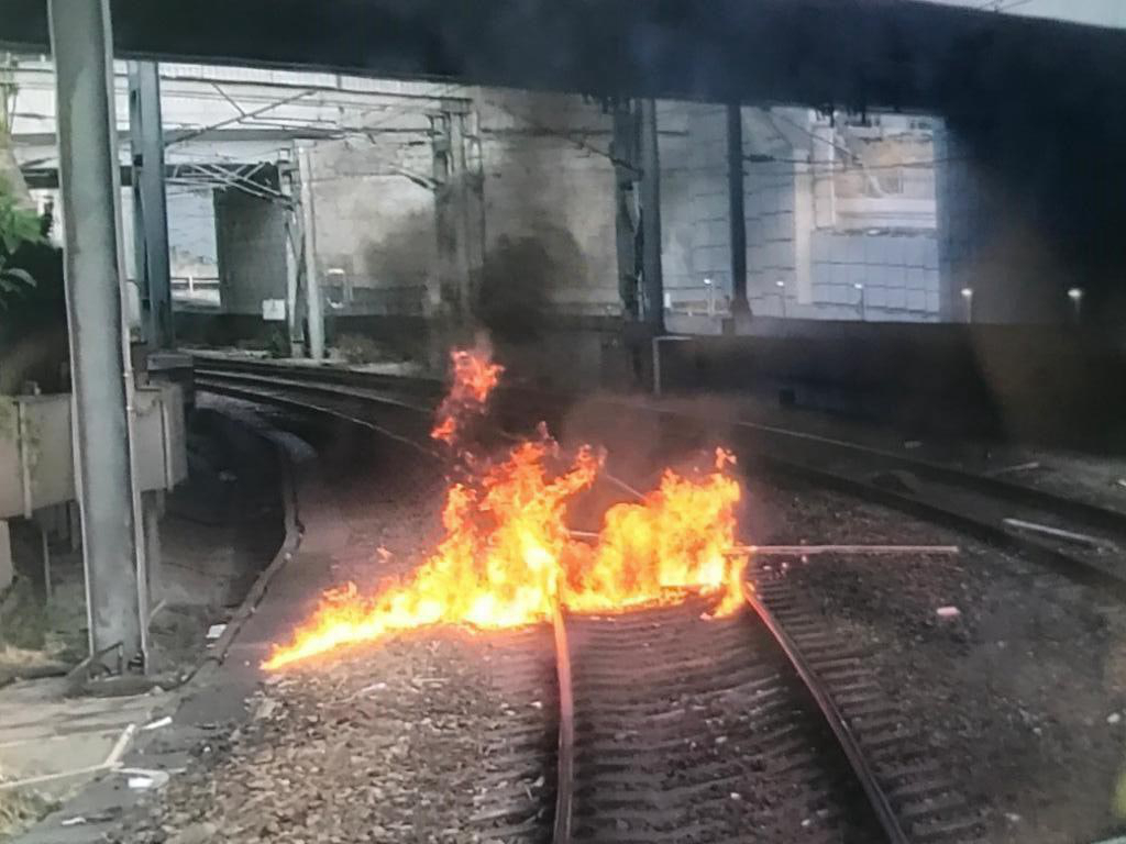 昨早東鐵線服務開始不久,紅磡站對開路軌範圍,分別於約5時45分和約7時20分被暴徒投擲汽油彈;晚上9時暴徒在相同位置重施故技。東鐵線來往紅磡站至旺角東站列車服務需要暫停。