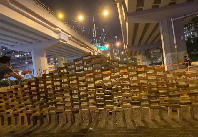 入夜後,旺角彌敦道和山東街再有黑衣人堵路,有人在地面擺放磚頭和竹枝等建成的路障,防暴警察出動向聚集的人發射催淚彈,有人投擲汽油彈。在荃灣,一批黑衣人晚上8時後在沙咀道堵路,有人從沙咀道遊樂場搬出多個龍門架,放在馬路中央,現場交通受阻。