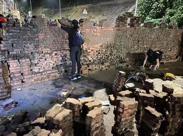 有的暴徒还在学校搭起了「投石机」,据称射程可达50米。
