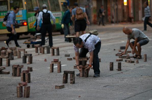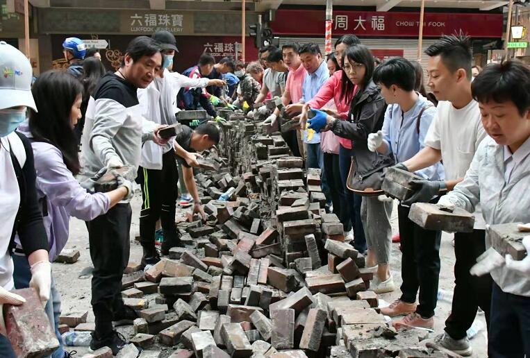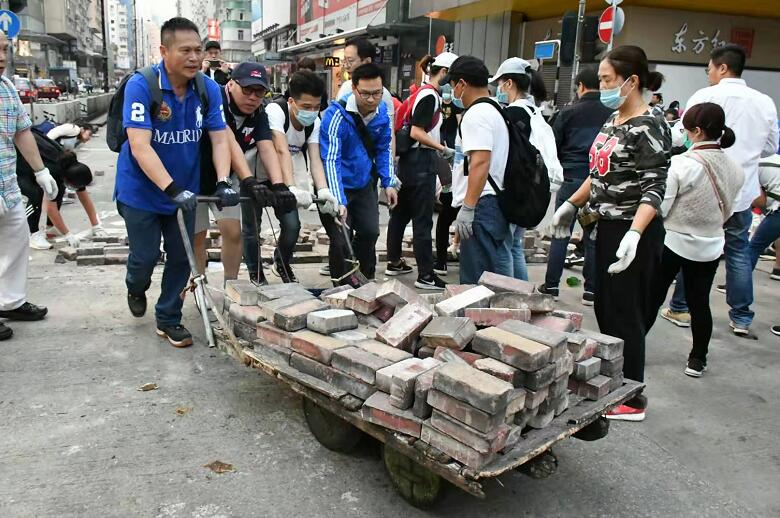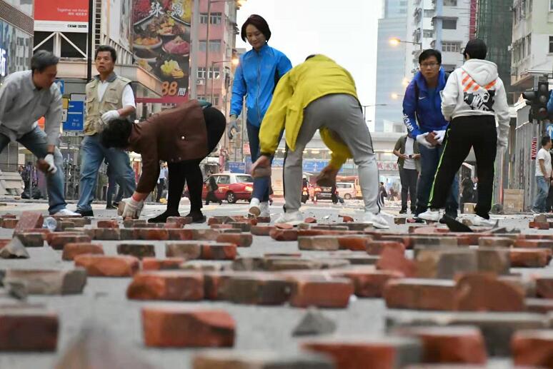 清晨六點半有市民自發清理彌敦道的路障,其中有幾道示威者築起的矮牆,市民以螞蟻搬家式一塊一塊磚頭搬到路邊,差不多用了四十五分鐘,彌敦道旺角段清理完成通車。