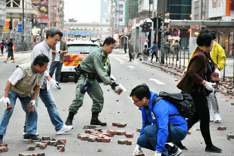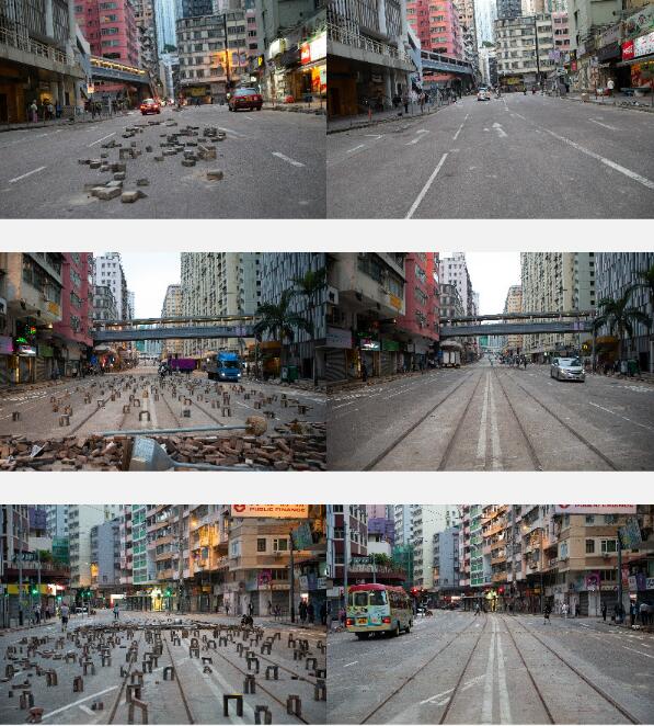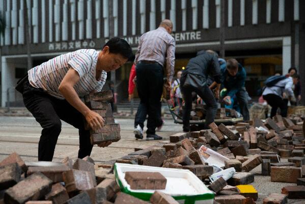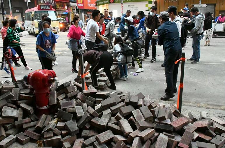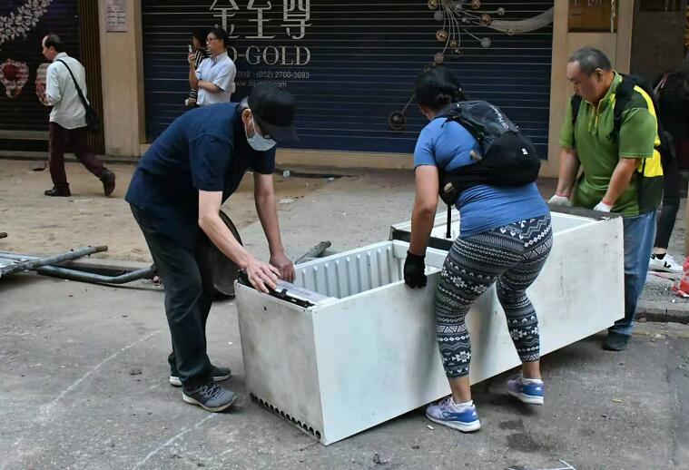 【香港商报网訊】暴徒本周接連四日煽動所謂的「三罷」行動,在全港各區設路障堵塞交通,破壞港鐵車站及路軌,嚴重影響公共交通安全及市民出行,引起市民強烈不滿。今日早晨,眾多市民自發走上街頭,在旺角、西灣河、天水圍、荃灣等地清理路障,用自己的雙手躬身搬開堵路的磚頭,將橫在路上的路牌移走,盡自己的能力守護家園,保證香港社會的正常運行。