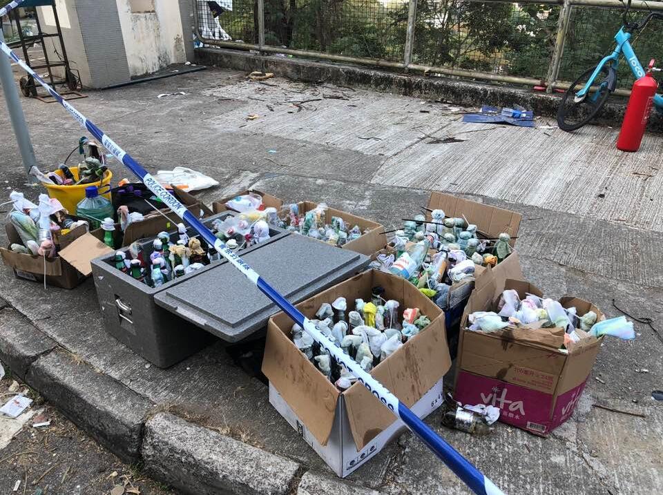 暴徒撤離後2號橋堆滿暴徒留下的汽油彈。