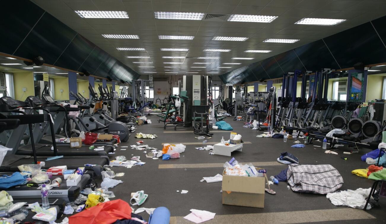 中大的健身室一度成為暴徒休息地方,人去樓空 後,一片狼藉。