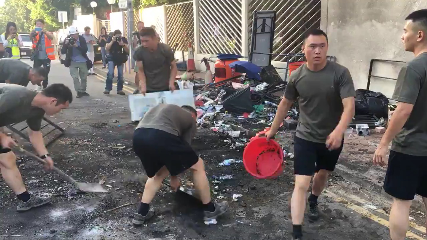 駐港部隊前日在九龍塘一帶清除路障。 網上圖片