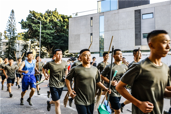 對有人質疑駐港部隊官兵清理街道的問題,基本法推廣督導委員會委員李浩然說,清理垃圾的行為並不是基本法第14條所指的「維持社會治安和救助災害」,駐港部隊的官兵是自願自發進行清理街道的行為,且特意穿上便裝,並不違反基本法。他指出,駐港部隊官兵一向可以外出進行非軍事的正常活動,不過,駐港部隊有嚴格的內部管理制度而已,但這不代表官兵不得外出活動。