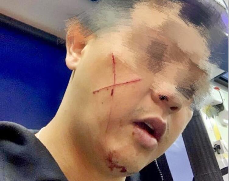 遇襲休班警右邊面有 「交叉」 狀傷痕。 葛珮帆facebook圖片
