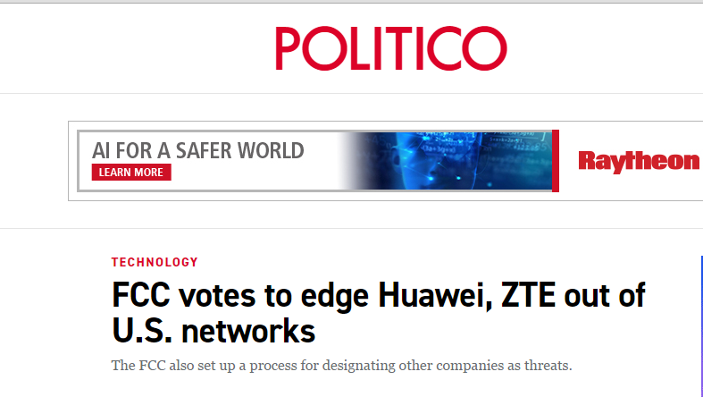 美國“政客”網站消息,當地時間22日,美國聯邦通信委員會通過禁止運營商使用聯邦補貼資金購買華為和中興設備的決定。“政客”網站認為,這是美國聯邦政府試圖遏制中國通信企業影響的最新努力。