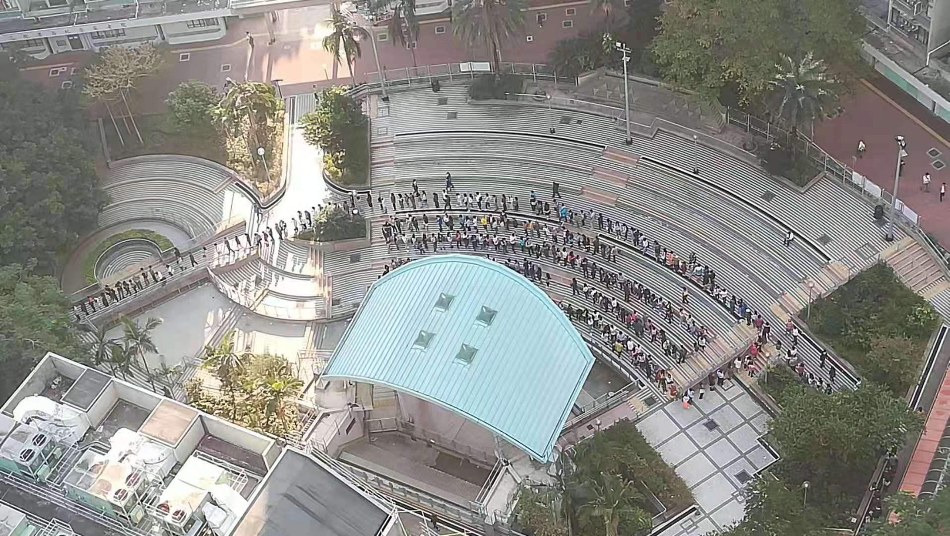 【16:10】北角堡垒区选民大排长龙,人群耐心等待投票。