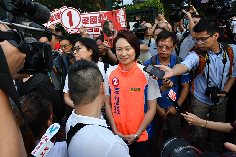 【01:50】土瓜灣北選區點票完畢,李慧琼得票1881票,梁國雄得票1538票,12票無效票,李慧琼勝出。