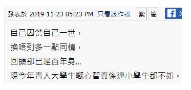 还有留言称,「自己囚禁自己一世,换不到多一点同情,回头却已是百年身……现今年轻大学生的心智真是连小学生都不如。」