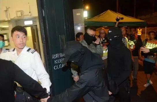 暴徒向警方登记资料后被带往医院(图片来源:香港《星岛日报》)