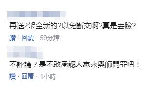 针对台“国防部”这种态度转变,有岛内网友直言:“不评论?是不敢承认人家来兴师问罪吧!” “再送两架全新的以免断交啊?真是丢脸”。