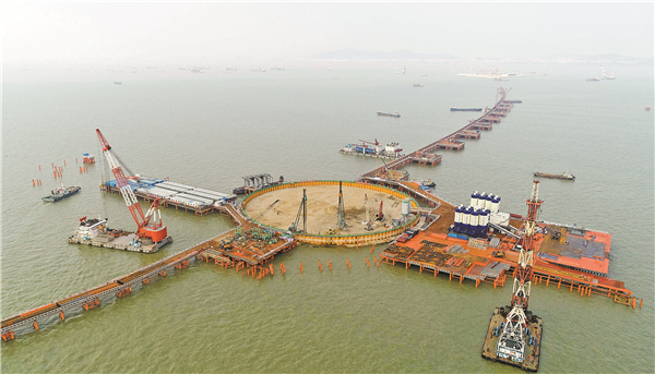 深中通道伶仃洋大橋東錨碇圍堰施工現場。資料圖片