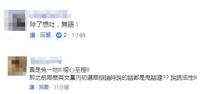 也有网友表示“除了想吐,无语!”“真是吐一地!恶心至极!那之前跟蔡英文‘党内初选’辩论时说的话都是鬼话?(赖清德)说谎成性!”