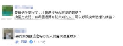更有网友直言“要瞎到什么程度,才会还没发现蔡婆的缺点?有哪个还算有点良知的人,可以睁眼说出这样的瞎话?”“要找到说话这么恶心的人,就属民进党最多!”