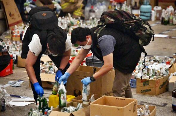 警方在理大校園內檢獲大批汽油彈。圖:星島