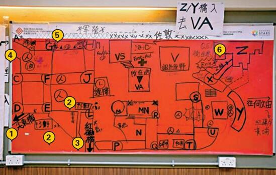 布防图显示出暴徒的行动高度军事化,有组织、有指挥。暴徒甚至一早拟定了逃生路线,就是Z core天桥。18日晚有不少暴徒试图在Z core天桥游绳逃走,“车手”则在漆咸道接载他们离开。