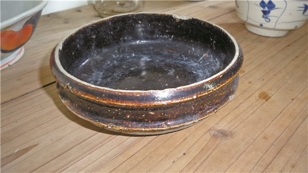 黑色彩釉陶缽,市面上仍可見到,有食肆以此陶缽蒸豬肉。