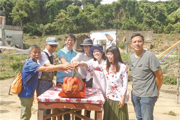 【香港商報訊】記者周駿報道:新界鄉村開設鄉村故事館方興未艾,繼10月「西貢滘西村故事館」開放後,11月3日,沙頭角舉行「梅子林故事館」啟動禮。始建於1661年的沙頭角梅子林村有着400年客家村史,惟香港邊界劃為禁區後,古村荒廢逾30年,近年在村代表努力復建下,恢復水電、種植果樹,更有多個團體和機構在復修後的老屋開設「梅子林故事館」,通過「天、地、人梅子林藝術活化計劃」,於館內展示客家衣食住行用品及生態工藝品,又於館外山坡上殘牆繪壁畫展現鄉村野生動植物,寓風情、藝術穿越郊野的人文時光隧道。當日活動吸引港九新界地區百多名市民參觀。舉辦方指,該項計劃實施共投入8萬元,其餘三分之二資金則由有心機構、團體贊助。