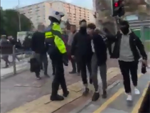 【香港商報网訊】記者馮仁樂報道:暴亂荼毒未成年人士,一批穿着校服的中學生,前日在上學前到土瓜灣馬頭圍道一帶堵路後,昨早再次出動,用雪糕筒非法堵路和用噴漆塗污途經的巴士擋風玻璃,但被警方部署在場監視的一批便裝特遣隊警員成功制止,在譚公道附近一段馬頭圍道拘捕3男1女中學生,年僅14和15歲;並當場在各人書包內搜出手套、噴漆和伸縮棍。期間1名中年男推開正制服學生的女警,亦當場被捕。
