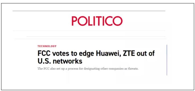 据美国“政客”网站消息,当地时间11月22日,美国联邦通信委员会通过禁止运营商使用联邦补贴资金购买华为和中兴设备的决定。“政客”网站认为,这是美国联邦政府试图遏制中国通信企业影响的最新努力。