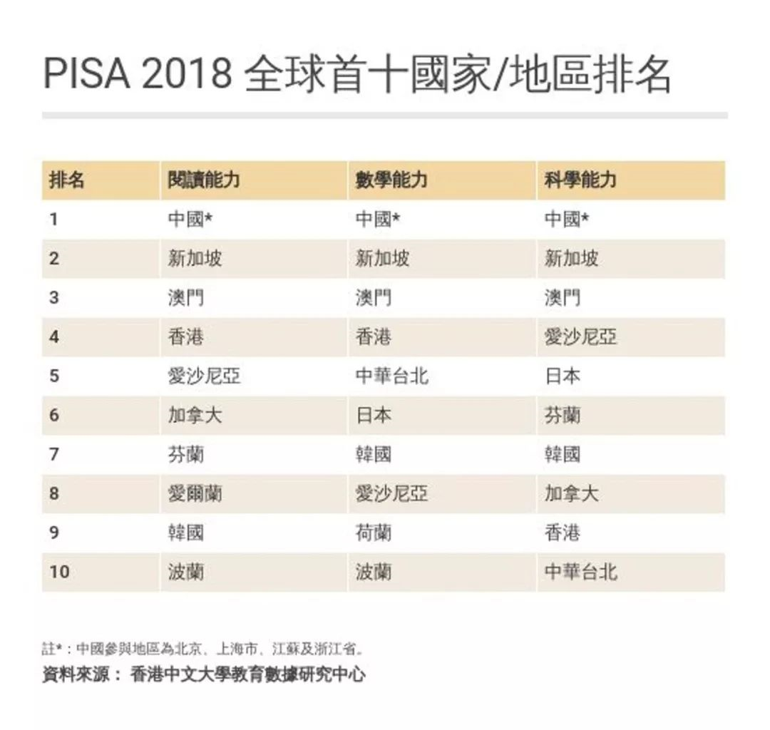 2018PISA放榜:內地第一,澳門反超香港列第三