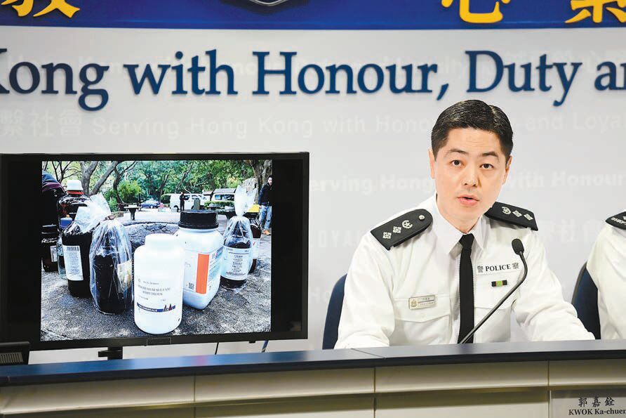 郭嘉銓指出,留意到有人收集大量危險化學品,可製造出過去於示威中暴徒使用的武器。記者崔俊良攝