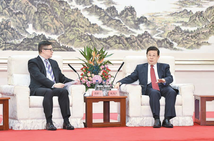 國務委員、公安部部長趙克志在京會見香港警務處處長鄧炳強。新華社