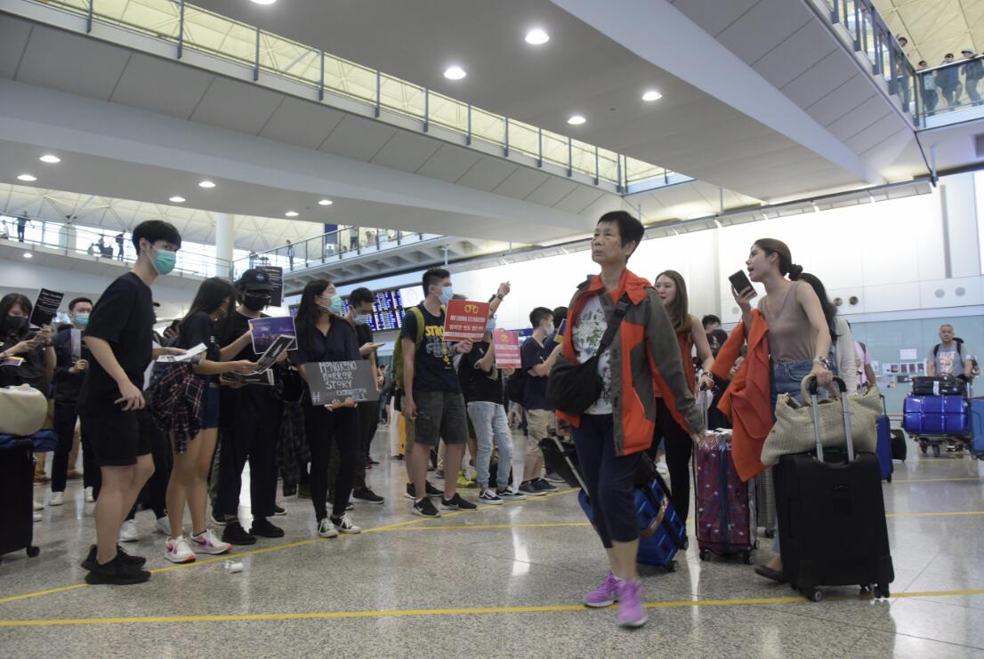 7月26日,數千示威者聚集香港國際機場,抵港旅客從示威者中艱難離開。 中通社