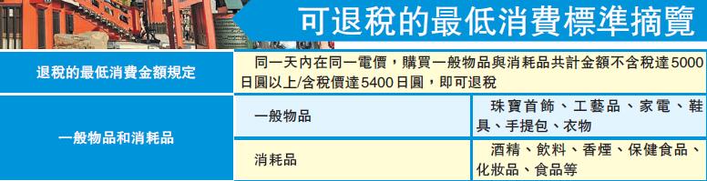 目前,外國觀光客在日本購物退稅的話,常見的退稅方法分為兩種。一種是以免稅價格結帳,這種一般是在免稅藥妝店和3C電器店等,就是單次消費額滿5000日圓之後,當日在購買店的免稅櫃枱結帳。但需要注意的是,5000日圓的門檻不接受合單,必須是單次消費。另外,針對酒類、化妝品、香煙、健康保健品等屬於消耗品範疇內的商品,必須要進行特殊包裝,且不能在日本境內打開,需要在購買後30天內帶出日本。