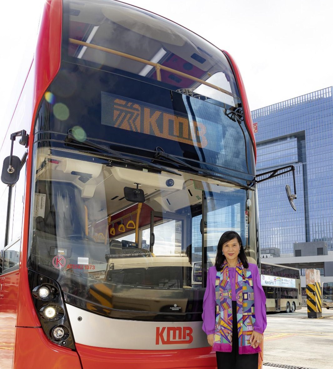 伍穎梅與最新型號巴士合照。