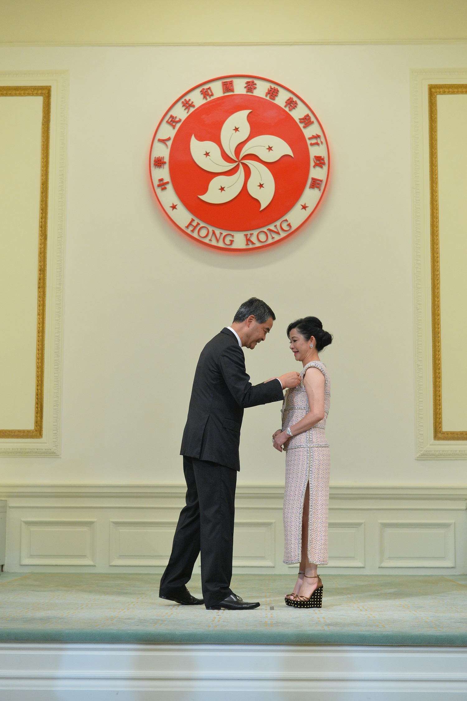 史顏景蓮獲時任行政長官梁振英頒發榮譽勳章。